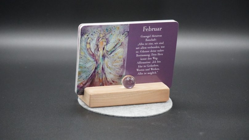 Der Engelkalender ist eine besondere Art von Kalender, die für jedes Jahr genutzt werden kann und jeden Monat eine inspirierende Botschaft von Engeln vermittelt. Er präsentiert sich stilvoll auf einem Holzständer und einer Bergkristallkugel. Diese Kombination aus Design und spiritueller Bedeutung macht ihn zu einem idealen Begleiter durch das Jahr. Jeder Monat wird durch eine einzigartige Botschaft bereichert, die dazu anregt, sich mit den eigenen Zielen und Wünschen auseinanderzusetzen und positive Energie in den Alltag zu bringen.