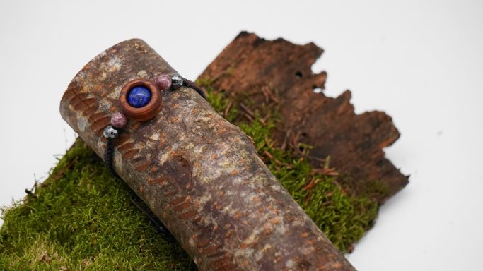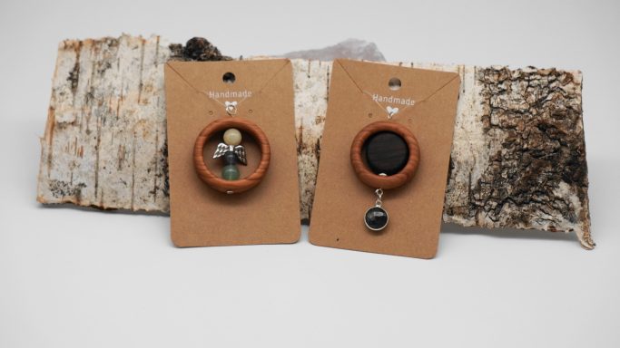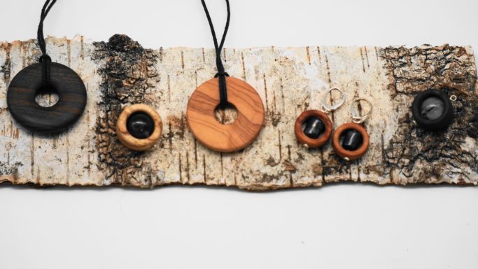 Zusammengestellt werden diese Werke aus natürlichen Materialien wie edlem Holz, (Halb)Edel-Steinen und Silber 925.